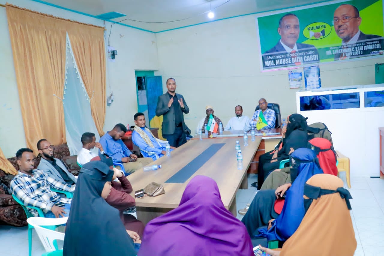 Masuuliyiinta xisbiga KULMIYE ee Gobolka Togdheer, ayaa kulan is-xogwaraysi iyo dardargelinta u diyaargarowga doorashada ah magaalada Burco kula yeeshay dalladda dhallinyarada HAYAAN oo gobolkaa ka dhisan.